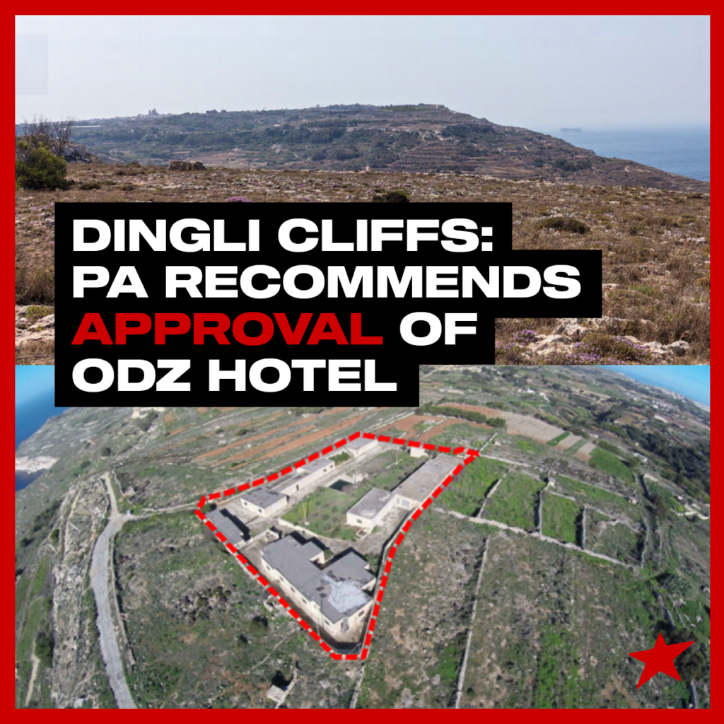 In addition, a magisterial inquiry on misuse of EU funds has been ordered by Magistrate Josette Demicoli, who concluded that there is the possibility of a criminal act being committed. The inquiry is investigating Stefan Zrinzo Azzopardi (Parliamentary Secretary responsible for EU funds), the Dingli Local Council and other government entities on the misuse of EU funds use to build a high rubble wall in the road leading to the proposed development. “Not only did the PA never intervene to halt works, but the board members voting in favour of the development risk becoming accomplices in a criminal act,” the group said.