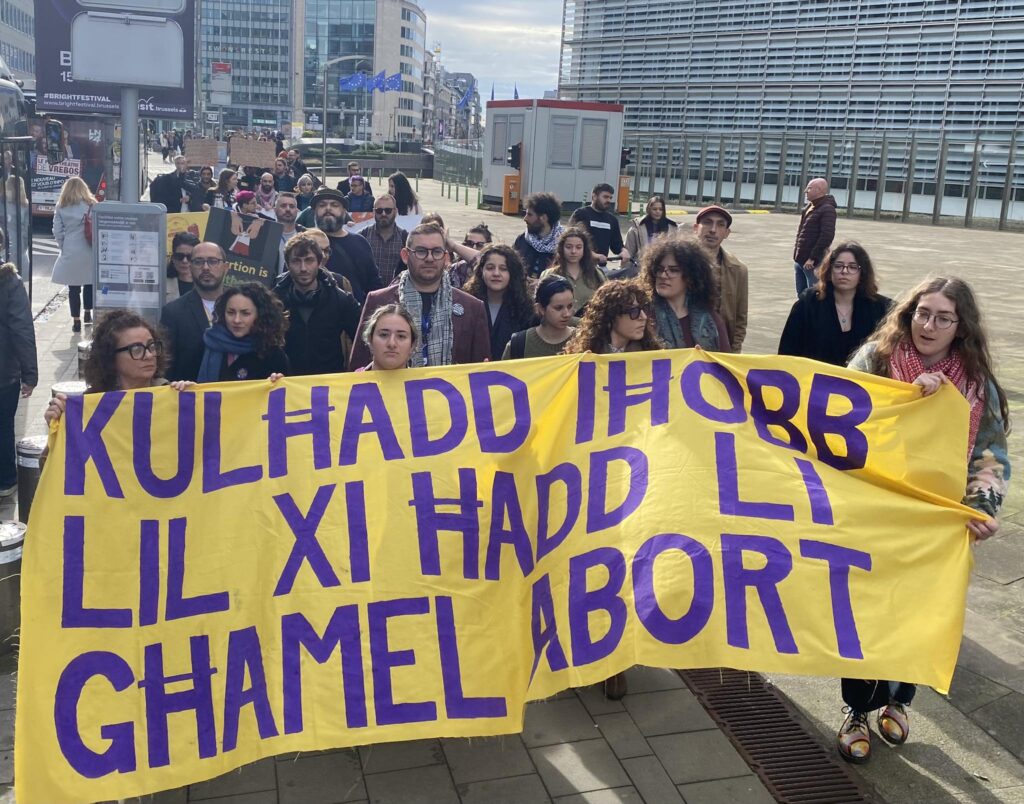 Today, activists from Moviment Graffitti marched with other women’s rights activists, allies and MEPs from the European Parliament to the Maltese Embassy in a rally to highlight Malta’s unjust abortion laws and the abortion stigma that still exists in Malta.