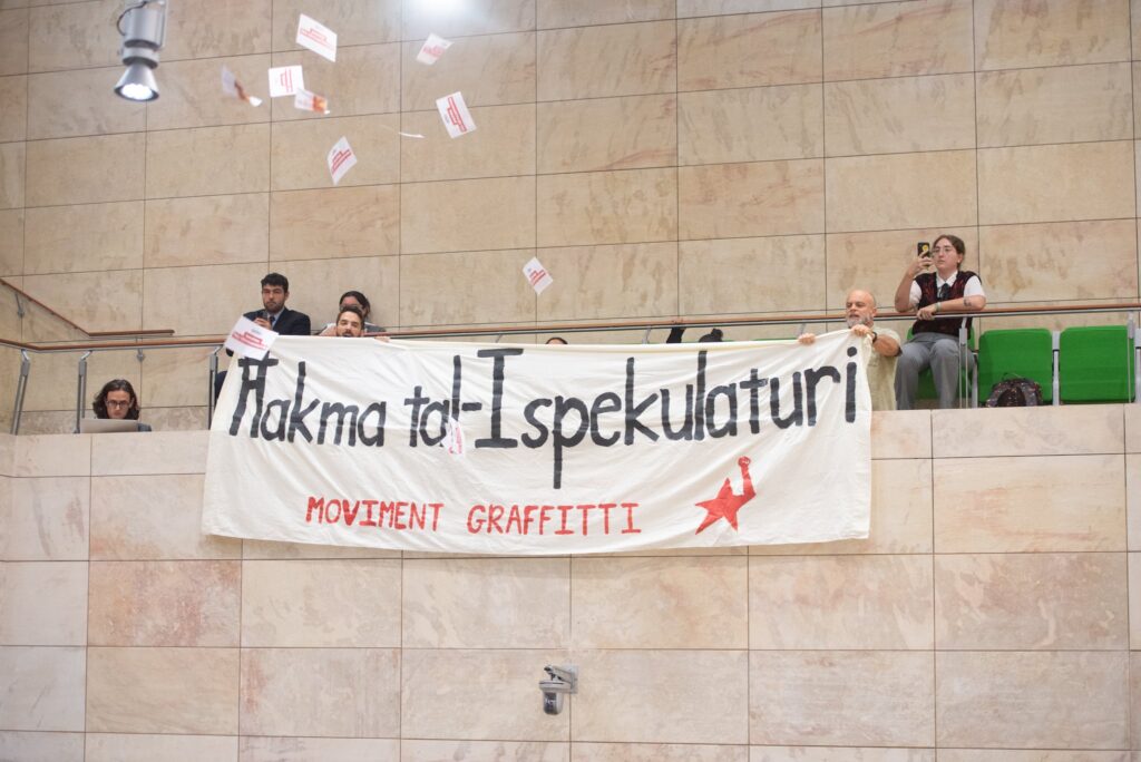 Illum il-Moviment Graffitti qiegħed iwettaq azzjoni diretta waqt id-diskors tal-Budget.