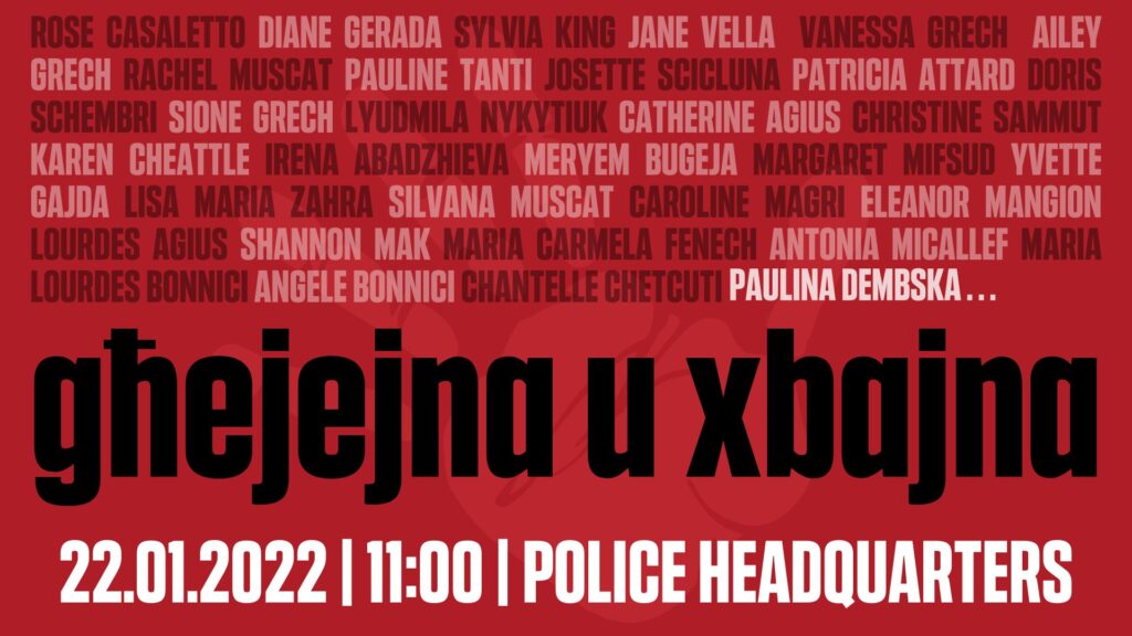 📆 Ingħaqdu magħna s-Sibt 22 ta’ Jannar għal protesta quddiem il-Kwartieri Ġenerali tal-Pulizija fil-11 am.