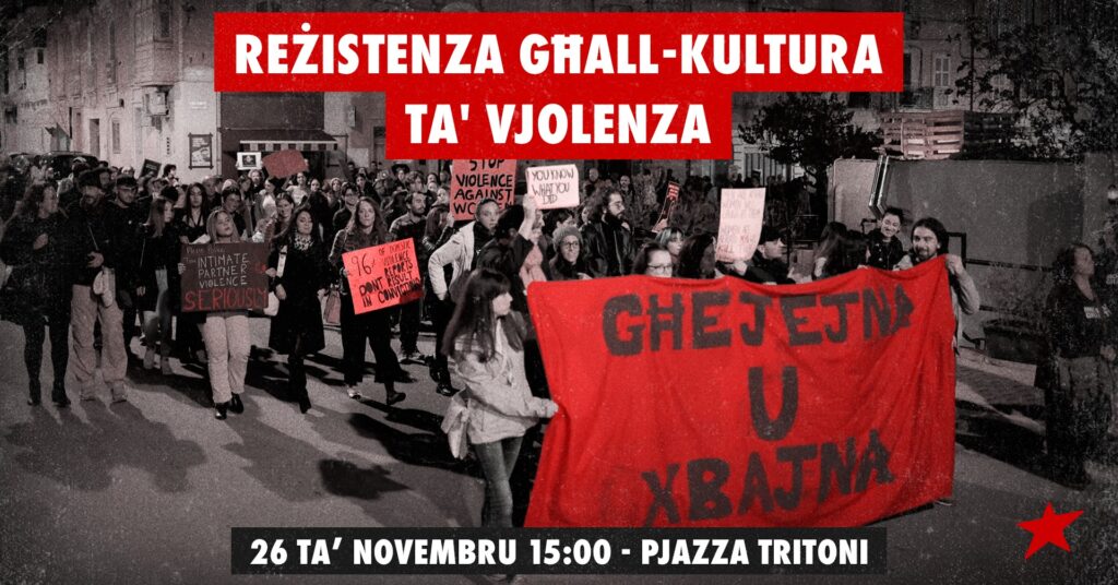 25th November is the International Day for the Elimination of Violence Against Women. Moviment Graffitti, together with Young Progressive Beings, is organising a protest march and action as a form of resistance to the culture of violence that characterises our patriarchal society.