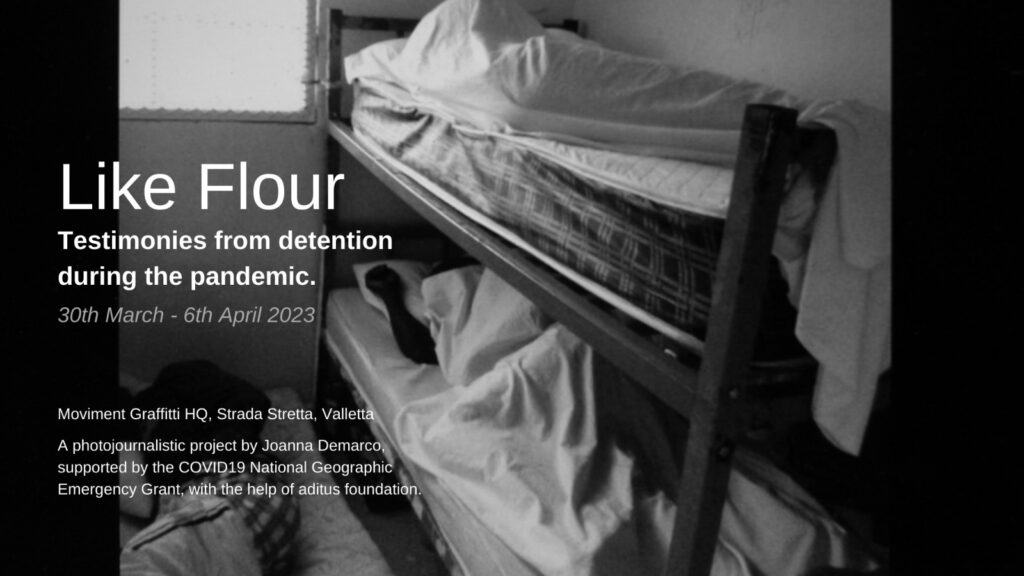‘Like Flour’ is a project spearheaded by photojournalist Joanna Demarco. The project navigates the experiences of people who were detained in Malta’s migrant detention centres during the pandemic, questioning and shining a light on the ways in which the inhumane treatment of one of Malta’s most vulnerable communities became worse throughout that period.