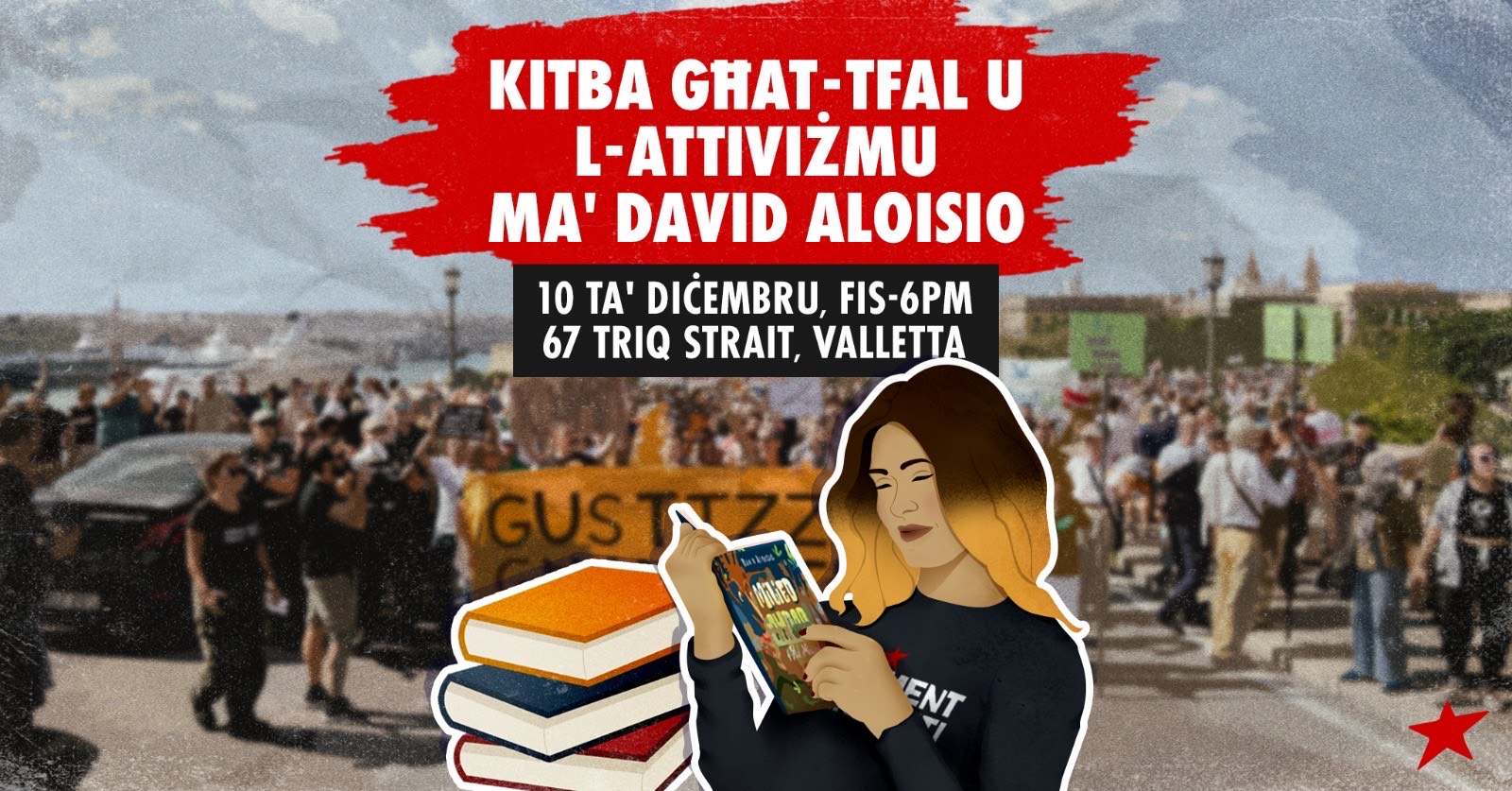Ingħaqdu magħna l-Erbgħa, 10 ta' Diċembru, fis-6pm, ġewwa l-premises tal-Moviment Graffitti għal diskussjoni dwar il-kotba tat-tfal u l-attiviżmu. David Aloisio se jkun qiegħed jaqsam xi fti ħsibijiet dwar dawn is-suġġetti, anke permezz ta' eżempji mill-ktieb ġdid tiegħu "Milied Aħdar f'Ħal-Miżwed" ippubblikat minn Horizons Malta. Inħeġġukom tattendu għal din l-attivita' letterarja.