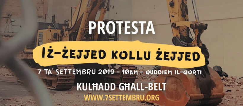 Qabel il-protesta tas-7 ta’ Settembru (Iż-Żejjed Kollu Żejjed - Protesta), il-forum pubbliku “Il-Proposti Tiegħek” jixtieq jiġbor u jagħti spazju lill-opinjonijiet u l-proposti taċ-ċittadini stess, speċjalment dawk marbutin mal-oqsma li huma l-qafas tas-sitt talbiet tagħna: Il-policies dwar l-Ippjanar u n-nuqqas ta’ kunsiderazzjoni lejn iċ-ċittadini; L-Awtoritajiet responsabbli mill-ambjent u l-ippjanar; Il-proġetti ta’ kostruzzjoni fuq skala kbira; It-toroq […]